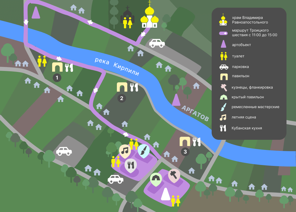 Накануне, как это было принято у кубанских казаков, мы почтим память предков. Будут показаны документальные спектакли по истории казачества ХХ века. На Троицу по всему хутору Аргатов пройдет большое праздничное шествие с пением обрядовых песен. Вечером на открытом воздухе состоится концерт с участием лучших фольклорных коллективов («Комонь», «Притоп Тритона», «Vetkafolk», «Казачья вольница») и рок-группы «Маша и Медведи».